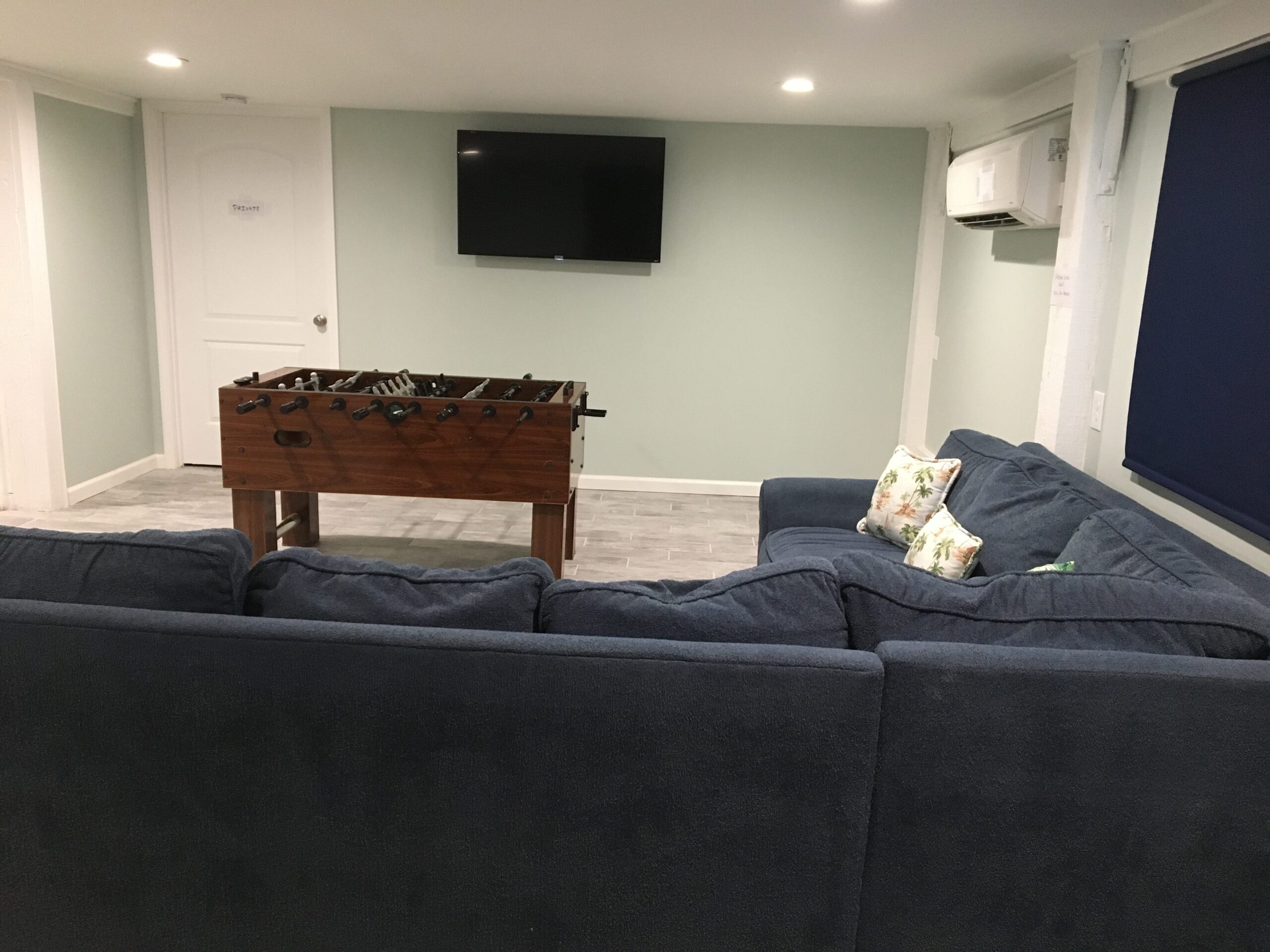Ground Level: Enclosed outdoor shower, pool, hot tub, TV, foosball, washer/dryer